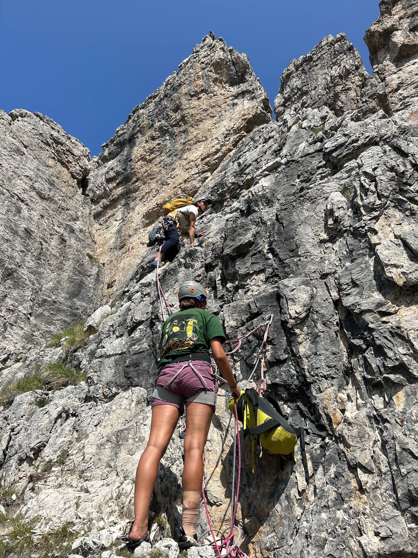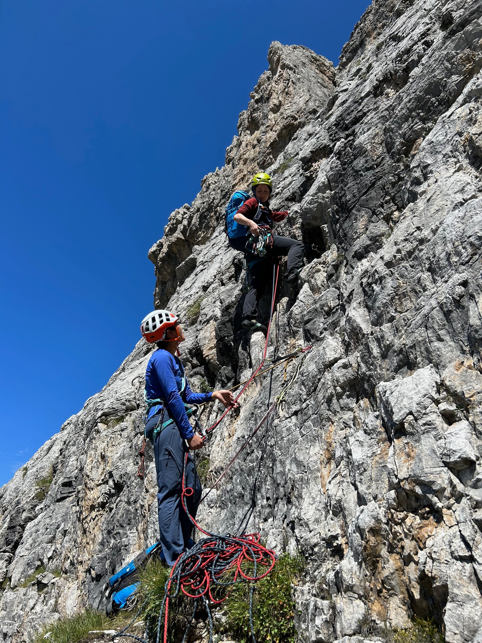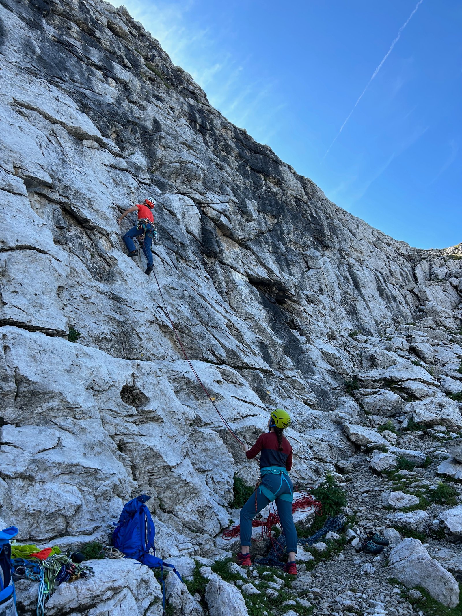 Our courses are held in the Brenta Dolomites and Adamello ranges: the Dolomites is famous for its "Dolomia" rock that is similar to limestone and the Adamello range is made of superb granite. Learn how to multi-pitch climb limestone and granite, only 1 hour drive apart, is quite an added value. Both areas have lots of routes that are ideal for beginners, intermediate and advanced climbers. We have created a hut to hut rock climbing itinerary where stay in mountain huts (like Rifugio Graffer and Rifugio Tuckett) and spend the days learning to climb. When the weather is not suitable for climbing in the mountains, we have B plans lower down in the valleys (Valle del Sarca or Valle Camonica) where it is possible to climb all year round.