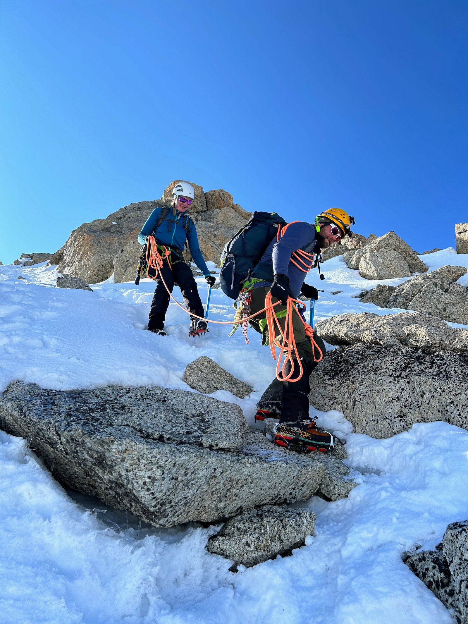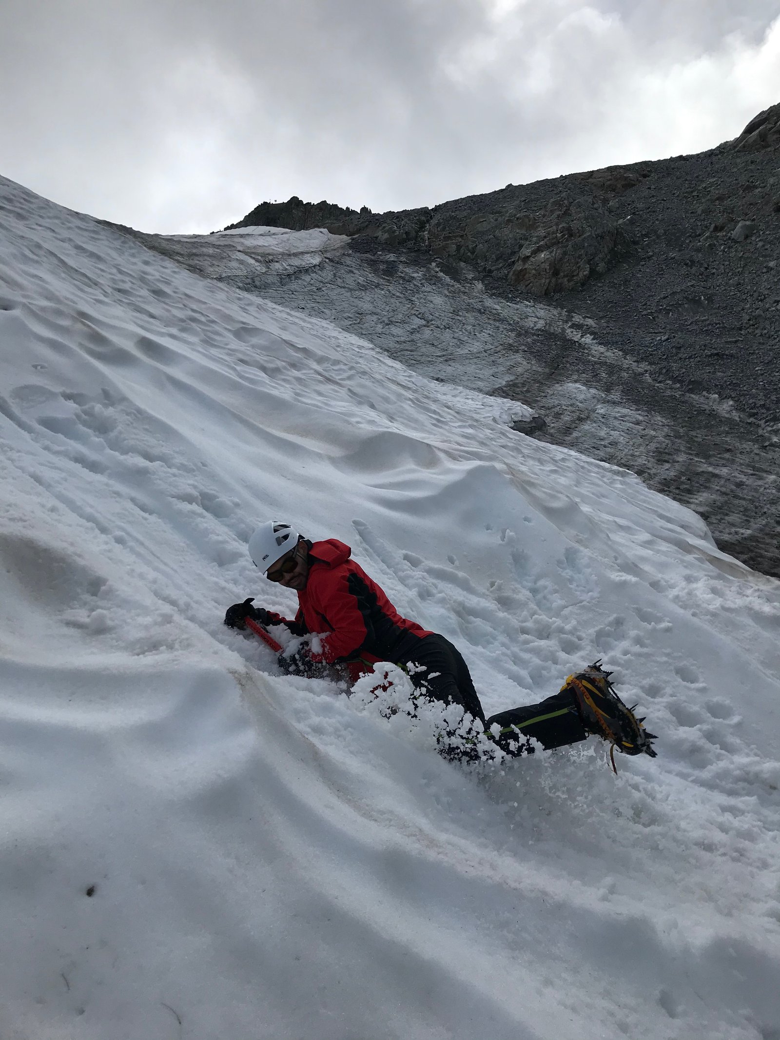 mountaineering equipment, crampon technique, ice axe arrest, crevasse rescue, glacier travel, short roping
