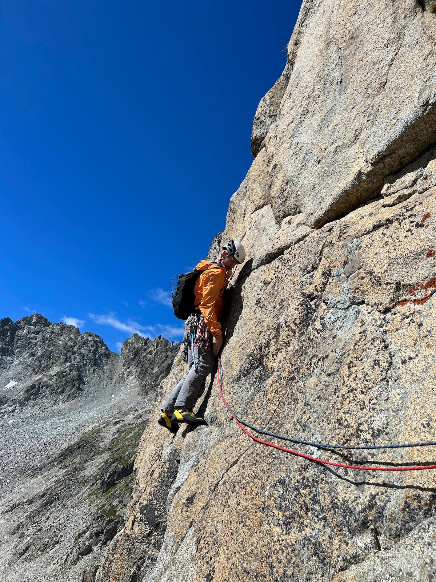 "Thank you Mountain Guides Italy for an amazing experience. We planed, prepared, bolted and climbed a new 3 pitch route on superb granite in Passo Tonale. Awesome!"